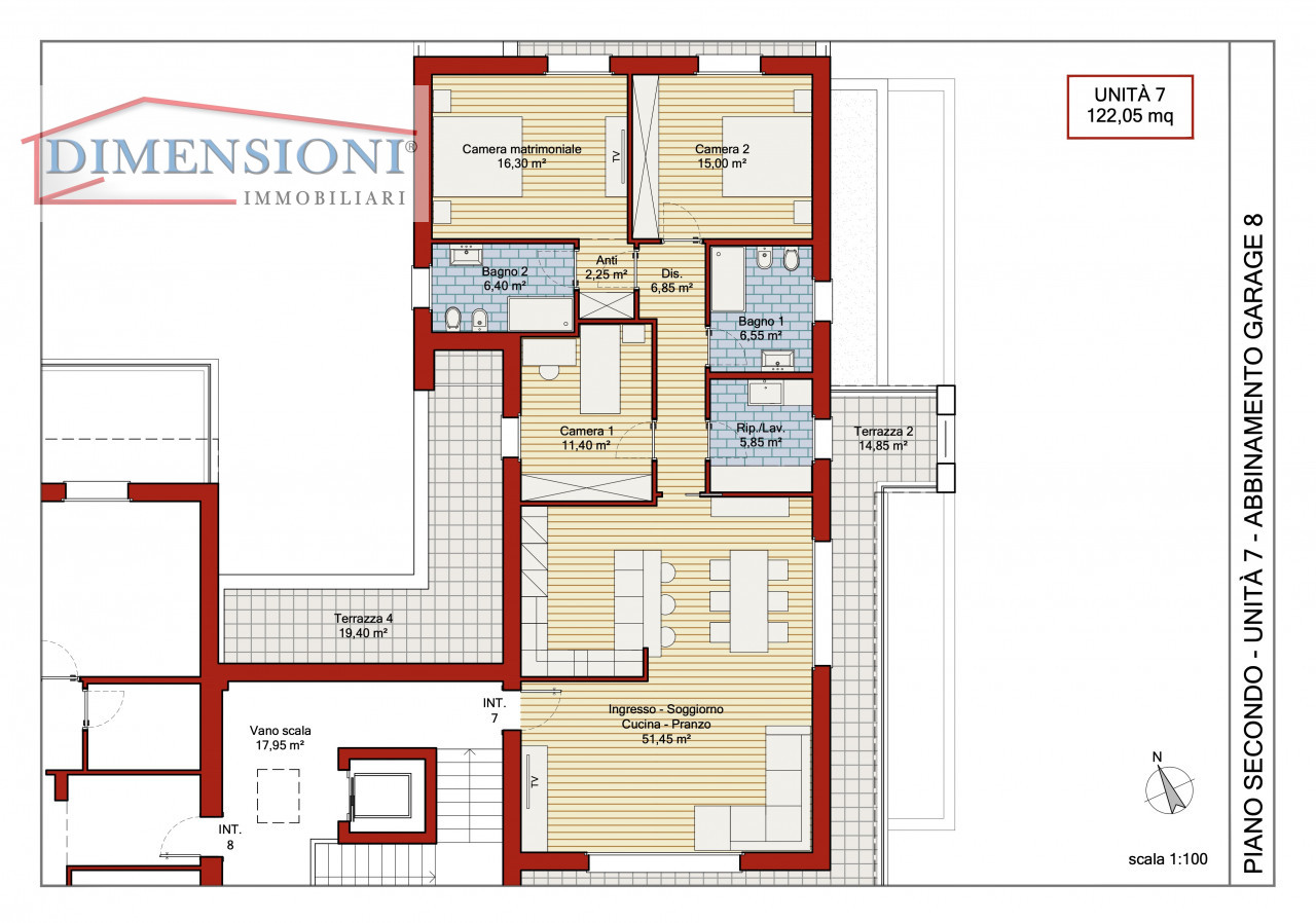 Finiture di alto livello: climatizzazione installata, tapparelle motorizzate, zanzariere, impianto TV con parabola satellitare centralizzata, predisposizione fibra ottica condominiale e impianto d’allarme perimetrale.