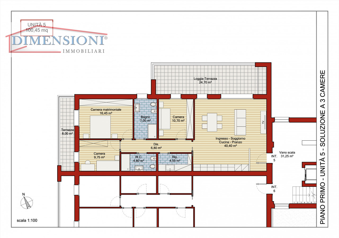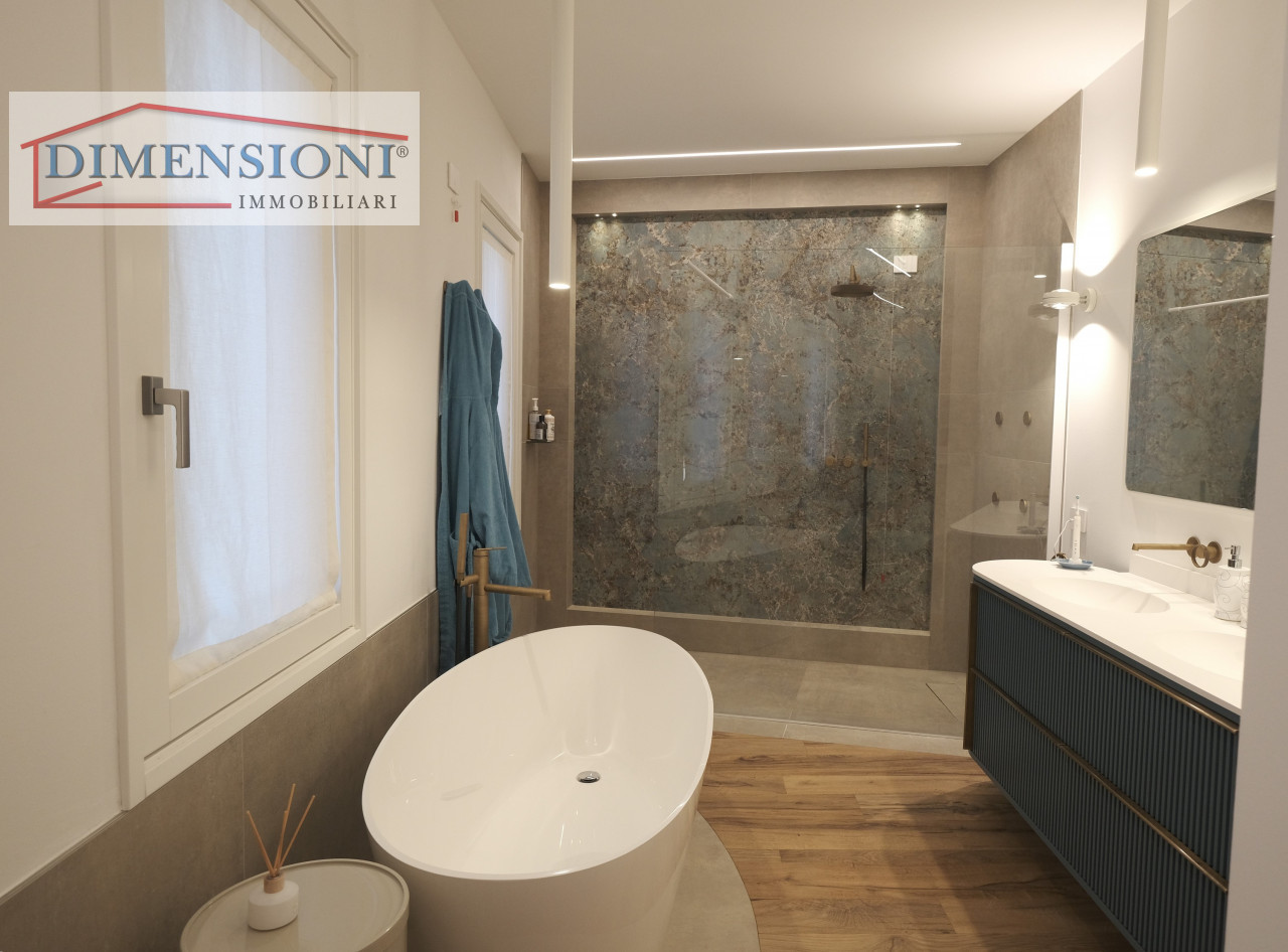 L’abitazione si compone di ampia zona living di 40 mq con accesso diretto a una terrazza abitabile, tre camere a scalare, doppi servizi, ripostiglio e loggia a servizio della zona notte.
